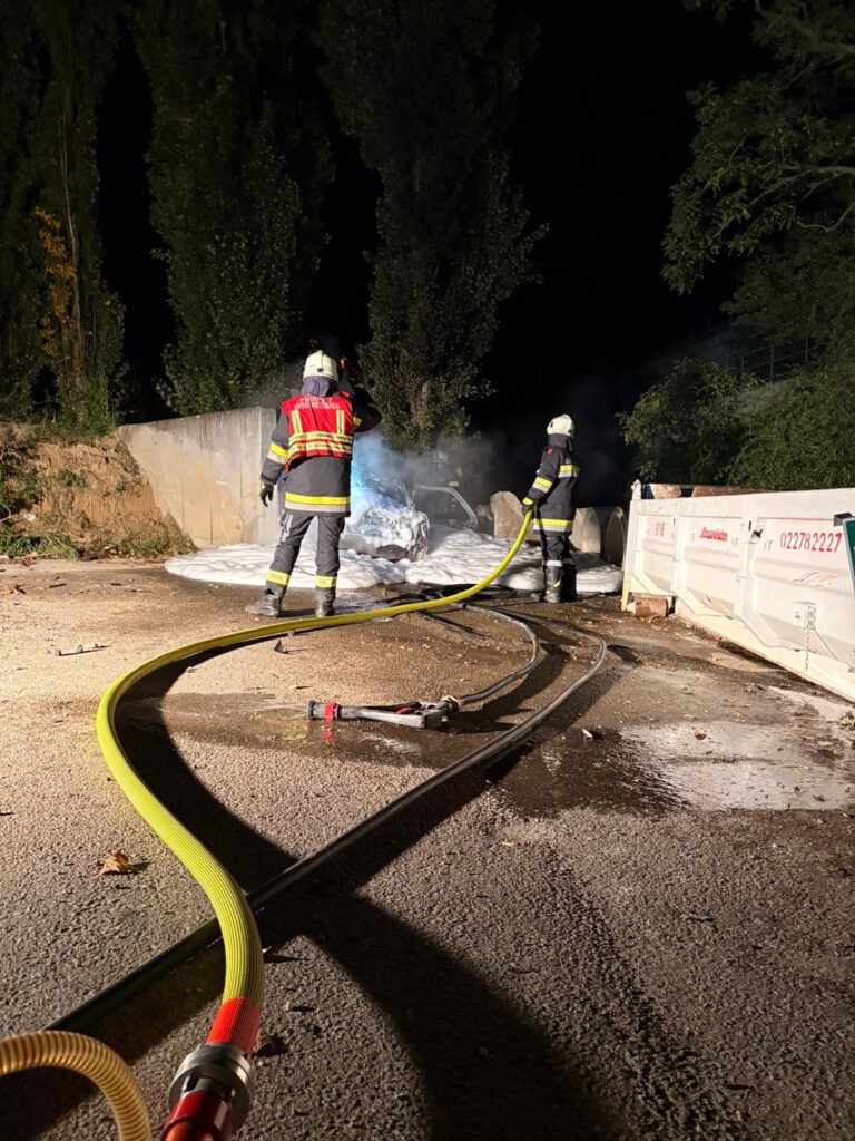 Schon während der Anfahrt zum Einsatzort rüstete sich ein Trupp mit Atemschutzgeräten aus. Nach Eintreffen erkundeten wir die Lage und bauten anschließend Beleuchtung und Wasserversorgung auf. Während der Atemschutztrupp sich noch fertig ausrüstete, konnten wir die Löscharbeiten des PKWs bereits von der Ferne aus mit einem HD Rohr beginnen. Anschließend konnte der Atemschutztrupp die, aus der Ferne nur schwer erreichbaren, Glutnester im Fahrzeuginneren löschen. Nachdem die letzten Glutnester abgelöscht waren, überdeckten wir das Fahrzeug noch mit einer Schaumschicht. Ein Übergreifen auf benachbarte Objekte konnte verhindert werden.